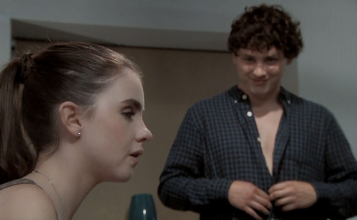 Unable to bring himself to do it, Dylan freezes, and Celia instead summons Robbie’s fellow worker Mick (Leon Harrop) to finish what she started, steering Dylan outside as the violence is left to unfold behind them.