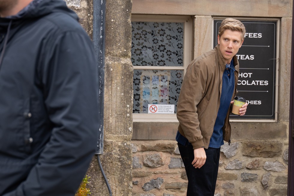 Aaron looking upset in Emmerdale