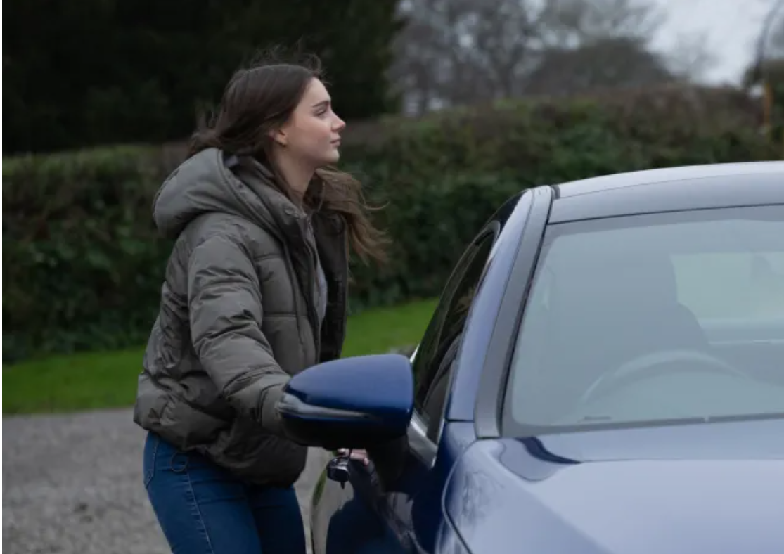 So Sarah can’t help herself when she spies a sports car parked outside the village hall. She’s about to speed off… only for Jacob to catch her red-handed in his horrible posse’s flashy motor. Busted!